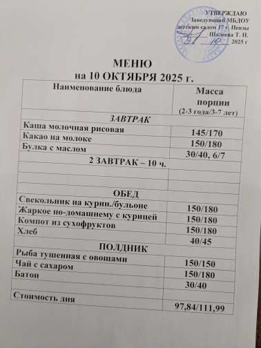 *10-дневное меню на осенне-зимний период для детей от 3 лет до 7 лет