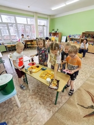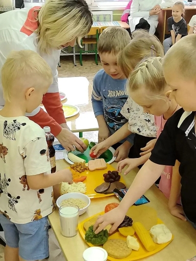 Занятие по формированию у дошкольников правильного пищевого поведения проведено в подготовительной группе № 2. Воспитанники группы внимательно выслушали рассказ о питательных веществах, необходимых для растущего организма, со знанием дела приняли участие в обсуждении полезности разных продуктов питания, с удовольствием участвовали в раздичных заданиях. С помощью муляжей, дети собрали «здоровую тарелку» на завтрак, обед, полдник и ужин.